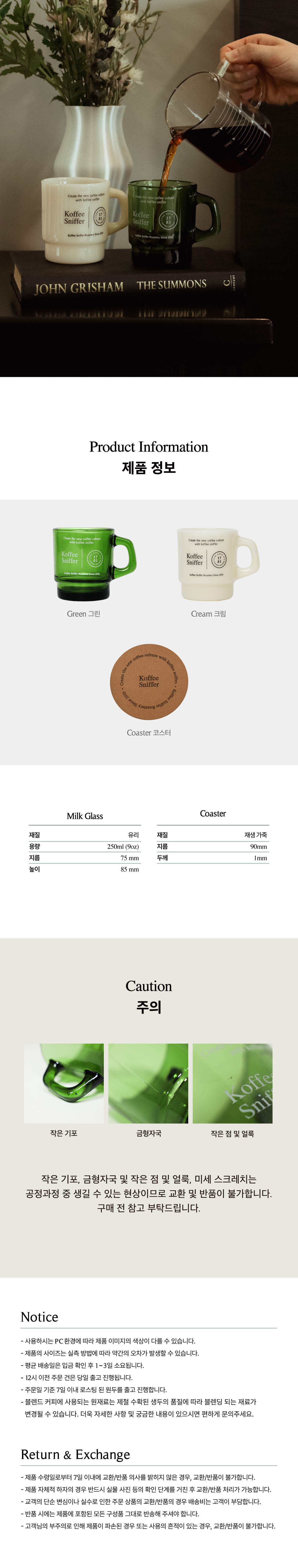 커피 스니퍼 밀크 글라스 & 코스터 세트